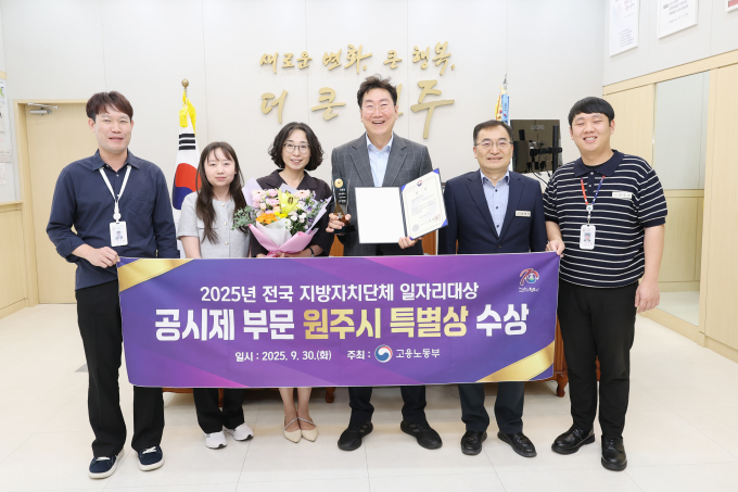 원주시, '2025 전국 지방자치단체 일자리대상' 특별상 수상.[사진=원주시] 2025.10.01 onemoregive@newspim.com |