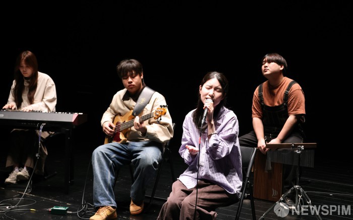[서울=뉴스핌] 최지환 기자 = 1일 오후 서울 동대문구 콘텐츠문화광장 스테이지66에서 열린 제3회 싱어송라이터 경연대회 '히든스테이지(HIDDEN STAGE)' 결선에서 참가번호 9번 윈지가 경연을 펼치고 있다. '히든스테이지'는 종합뉴스통신사 뉴스핌과 감엔터테인먼트가 주최·주관하고, 문화체육관광부·서울특별시·한국콘텐츠진흥원·한국음악저작권협회가 후원한다. 2025.10.01 choipix16@newspim.com
