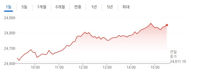 [그래픽=구글 캡처] 인도 증시 니프티50 지수 1일 추이 |