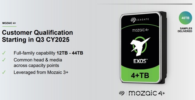 씨게이트는 디스크당 4TB를 저장하는 모자이크 4 플랫폼의 인증도 시작했다. 모자이크 4는 드라이브당 최대 44TB의 클라우드 워크로드를 지원할 수 있다. 경영진은 모자이크 4의 대량 생산이 2026년 상반기에 시작될 것으로 예상한다. HAMR 기반 드라이브의 출하량은 2026년 하반기까지 기존 수직 자기 기록(PMR) 하드 드라이브를 넘어설 것으로 전망된다.