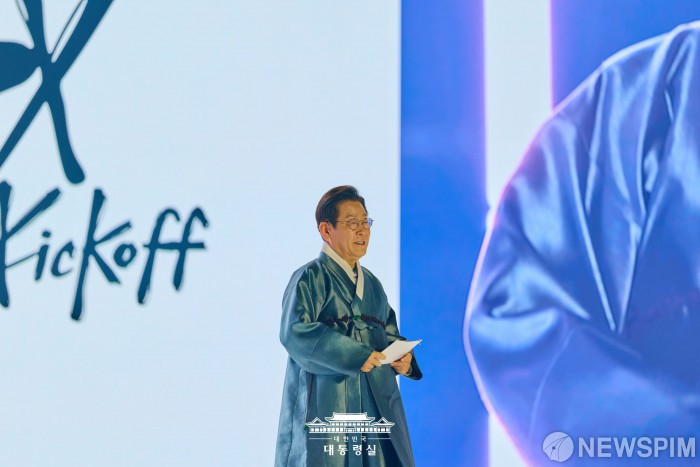 [서울=뉴스핌] 이재명 대통령이 1일 경기 고양시 킨텍스에서 열린 대중문화교류위원회 출범식에서 발언을 하고 있다. [사진=대통령실] 2025.10.01 photo@newspim.com