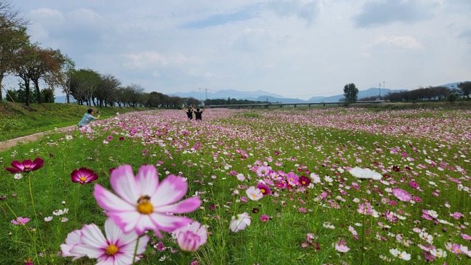 충북 진천군 도심 곳곳에 가을꽃이 활짝 펴 아름다운 풍경을 선사하고 있다. 진천읍 백곡천 일대에는 코스모스와 국화가 어우러져 한 폭의 가을 풍경화를 이루고 있다. [사진=진천군] 2025.10.02 baek3413@newspim.com |