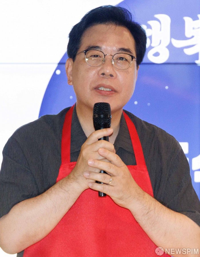 [서울=뉴스핌] 윤창빈 기자 = 송언석 국민의힘 원내대표가 2일 오전 서울 동대문구 동백꽃노인종합복지관에서 추석맞이 송편빚기 봉사활동을 하기 전 인사말을 하고 있다. 2025.10.02 pangbin@newspim.com