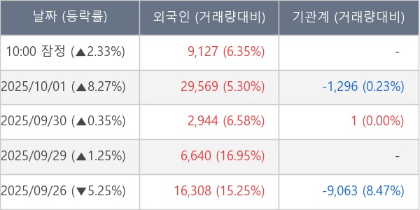 [표] 외국인ㆍ기관 순매매량 (단위 주)