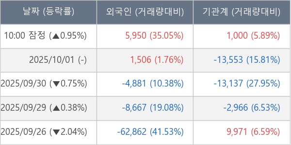 ※ 사모펀드 등 일부 기관의 순매매량은 표시되지 않음