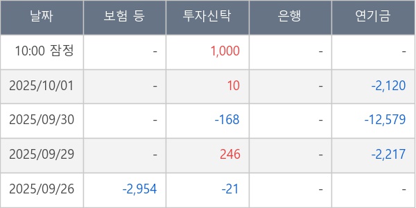 ※ 장중 매매동향은 잠정치이므로 실제 매매동향과 차이가 발생할수 있음