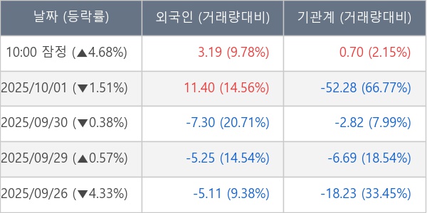 [표] 외국인ㆍ기관 순매매량 (단위 만주)