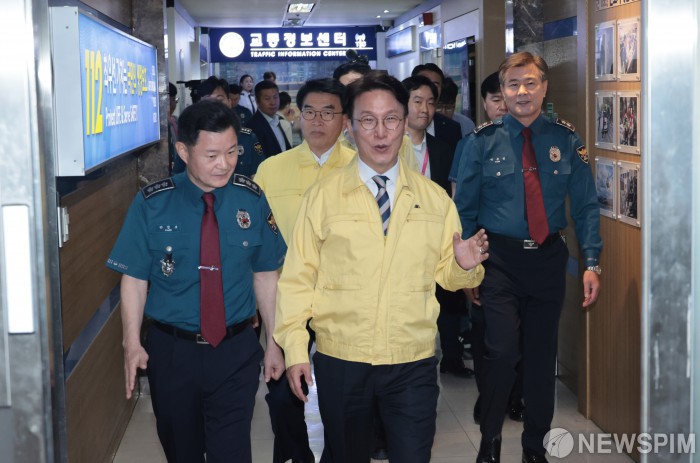 [서울=뉴스핌] 이길동 기자 =김민석 국무총리가 2일 서울 종로구 서울경찰청 112종합상황실을 방문해 추석 명절을 대비한 민생치안활동 및 특별경계근무 상황을 점검하고 있다.2025.10.02 gdlee@newspim.com