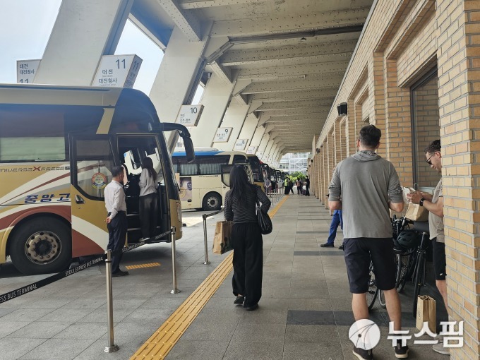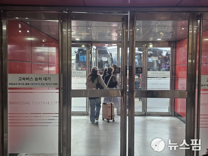 오전 9시 30분께 서울 고속버스터미널 영동선, 경부선 승강장에는 사람들이 캐리어를 끌며 각자의 탑승구로 이동 중이었다.
