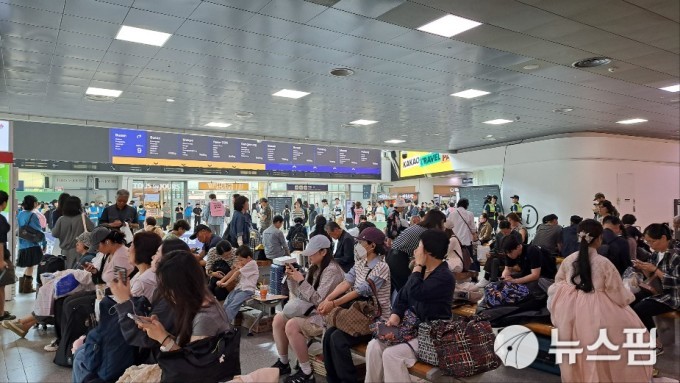 대합실에서는 조국혁신당의 귀성길 인사와, 전국장애인차별철폐연대(전장연)의 이동권 보장 시위도 진행되고 있어 경찰과 취재진도 보였다.