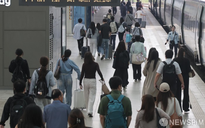 [서울=뉴스핌] 양윤모 기자 = 추석 연휴를 앞둔 2일 오전 서울역을 찾은 시민들이 귀성길에 오르고 있다. 2025.10.02 yym58@newspim.com