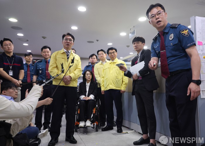 [서울=뉴스핌] 청사사진기자단= 김민석 국무총리가 2일 서울 종로구 서울경찰청 112종합상황실을 방문해 추석 명절을 대비한 민생치안활동 및 특별경계근무 상황을 점검하고 있다.2025.10.03 photo@newspim.com