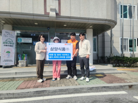 [원주=뉴스핌] 이형섭 기자 = 삼양식품 원주공장은 지난 1일 강원 원주시 우산동 행정복지센터를 방문해 340만 원 상당의 라면 등 자사 제품 105박스를 기부했다고 2일 밝혔다.