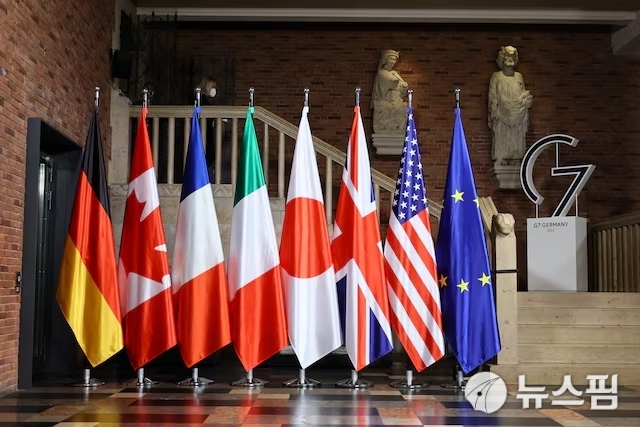 지난 2022년 11월 3일 독일 뮌스터에서 G7 외무장관 실무회의가 열린 가운데 회의장에 참여국의 국기들이 게양돼 있다. [사진=로이터 뉴스핌] |