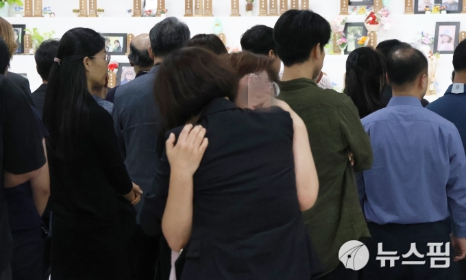 [무안=뉴스핌] 박진형 기자 = 추석 당일인 6일 오후 전남 무안국제공항 1층에 마련된 합동분향소에서 12·29 여객기 참사 희생자 추석 추모행사가 열리고 있다. 2025.10.06 bless4ya@newspim.com