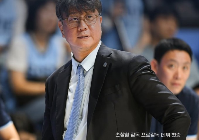 8일 프로농구 정규리그 홈 경기에서 프로 사령탑 첫 승라를 거둔 손창환 소노 감독 . [사진=KBL] |
