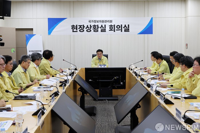 [서울=뉴스핌] 윤호중 행정안전부 장관이 8일 오후 국가정보자원관리원 대전센터를 방문하여 화재로 서비스가 중단된 행정정보시스템 복구현장을 점검한 뒤 복구계획 보고회를 하고 있다. [사진=행정안전부] 2025.10.08 photo@newspim.com