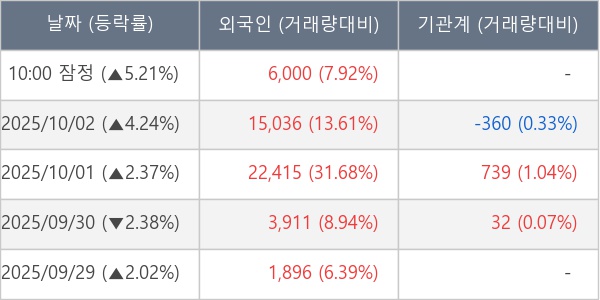 [표] 외국인ㆍ기관 순매매량 (단위 주)