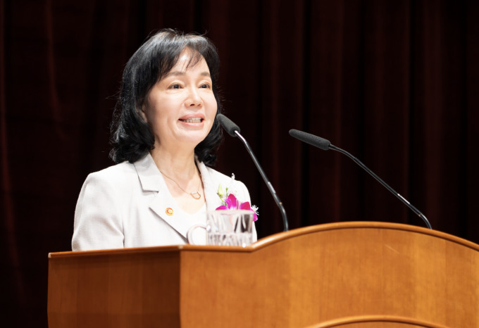 송경희 개인정보보호위원회 위원장이 10일 오전 정부서울청사에서 진행된 취임식에서 취임사를 하고 있다. [사진=개인정보보호위원회] 2025.10.10 biggerthanseoul@newspim.com
