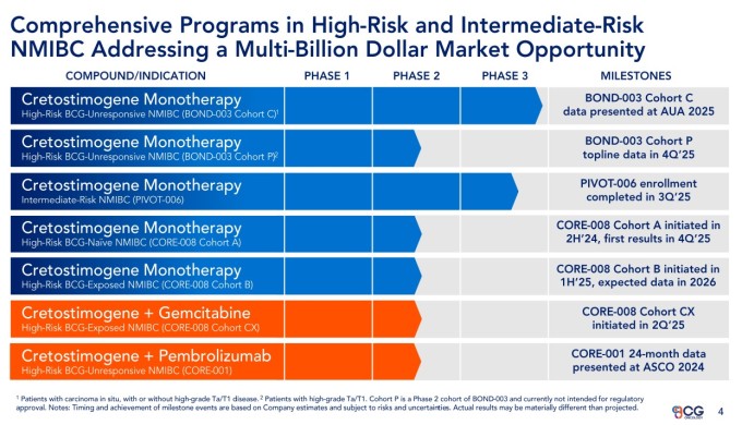구겐하임의 브래드 카니노 애널리스트는 "NMIBC 의약품 시장은 비교적 신생으로 많은 환자군과 업계 가격 결정력, 긴 치료 기간을 요한다"며 "크레토스티모진의 동급 최고 수준의 효능과 지속성, 안전성을 고려하면 CG온콜리지는 고품질 종양학 아이디어의 정상에 오를 것"이라고 했다.