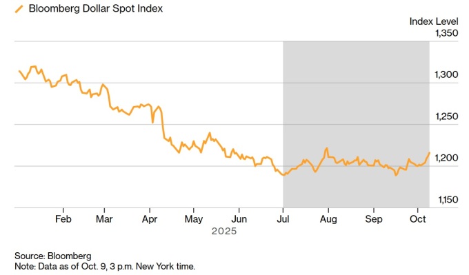 미국 연방정부의 셧다운 사태도 달러화 강세 흐름을 꺾어 놓기에는 역부족이다. 주요 통화에 대해 달러화는 2개월래 최고치를 기록했고, 헤지펀드 업계는 연말까지 달러화 강세가 지속될 가능성에 베팅하는 옵션 트레이드에 무게를 두고 있다.