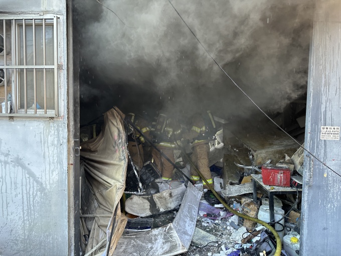 11일 오전 8시35분께 부산 사하구 한 스티로품 가공공장에서 불이나 소방서 추산 470여만원 상당에 재산피해를 내고 1시26분만에 꺼졌다. [사진=부산소방재난본부] 2025.10.11 |