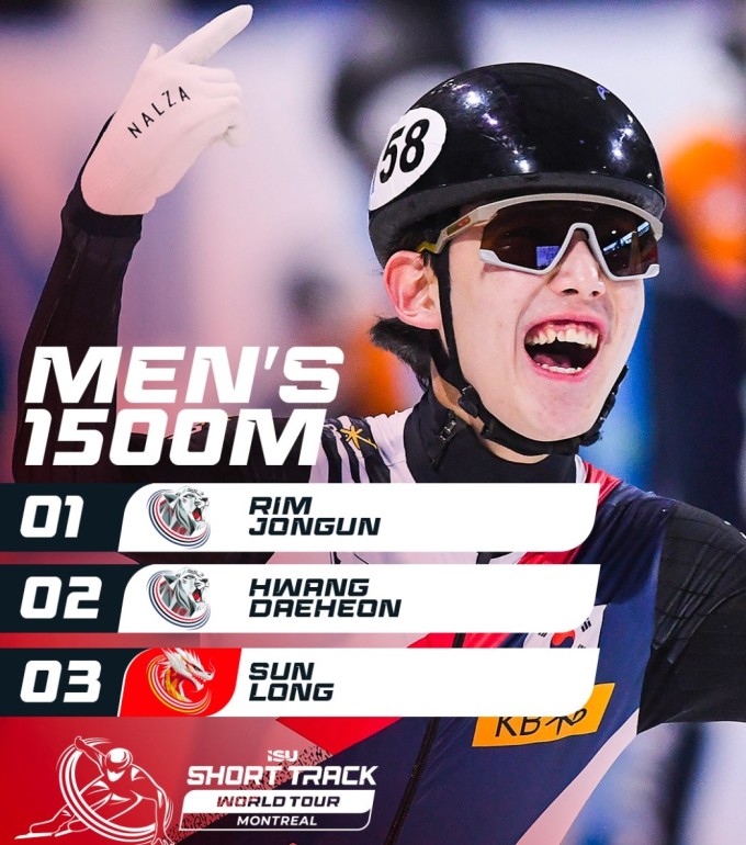 임종언은 12일(한국시간) 캐나다 퀘벡주 몬트리올 리차드 모리스 아레나에서 열린 2025-2026 쇼트트랙 월드 투어 1차 대회 남자 1500m 결승에서 2분16초141의 기록으로 금메달을 목에 걸었다.