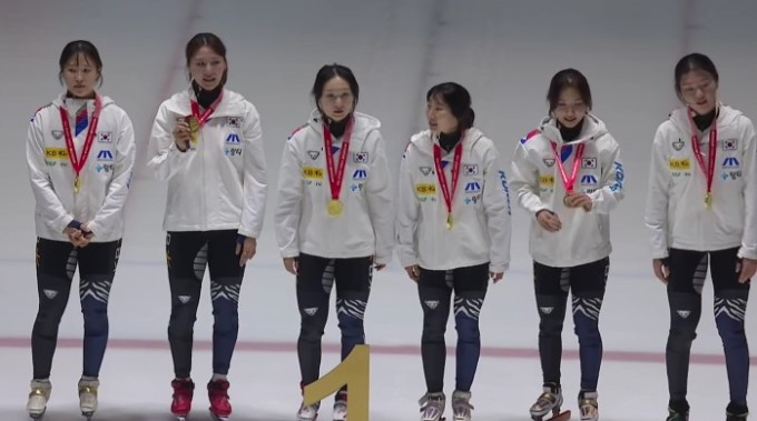 2025-2026 쇼트트랙 월드 투어 1차 대회 여자 3000m 계주 금메달을 획득한 한국 여자 대표팀. [사진=ISU] |