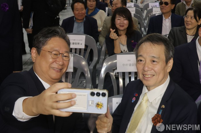 [서울=뉴스핌] 양윤모 기자 = 황희 국회의원(전 문화체육관광부 장관)이 12일 서울 강남구 코엑스에서 개최된 한일국교정상화 60주년 기념 '한일축제한마당 2025 in Seoul' 행사에 참석해 기념촬영을 하고 있다. 2005년 ‘한일우정의 해’ 를 계기로 시작된 ‘한일축제한마당’은 한·일 최대의 민간교류행사로 양국의 우호 증진을 목적으로 개최하고 있다. 2025.10.12 yym58@newspim.com