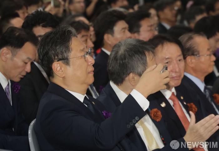 [서울=뉴스핌] 양윤모 기자 = 황희 국회의원(전 문화체육관광부 장관)이 12일 서울 강남구 코엑스에서 개최된 한일국교정상화 60주년 기념 '한일축제한마당 2025 in Seoul' 행사에 참석해 동영상을 촬영하고 있다. 2005년 ‘한일우정의 해’ 를 계기로 시작된 ‘한일축제한마당’은 한·일 최대의 민간교류행사로 양국의 우호 증진을 목적으로 개최하고 있다. 2025.10.12 yym58@newspim.com