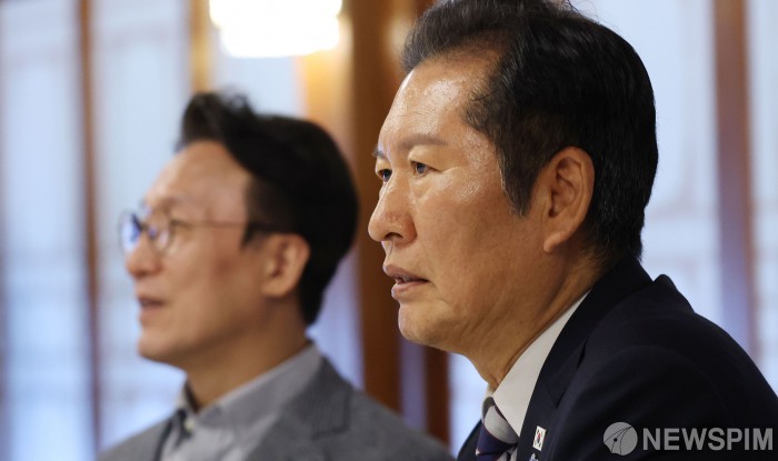[서울=뉴스핌] 양윤모 기자 = 정청래 더불어민주당 대표가 12일 서울 종로구 삼청동 국무총리 서울공관에서 열린 '제4차 고위당정협의회'에 앞서 참석자들과 대화를 나누고 있다. 2025.10.12 yym58@newspim.com