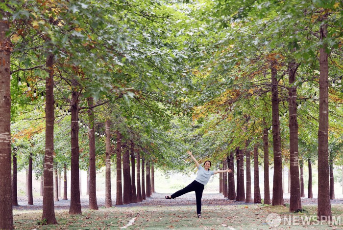 [서울=뉴스핌] 양윤모 기자 = 연휴 마지막날인 12일 오후 평창읍 평창강 일원에서 열린 '2025 평창 백일홍축제'를 찾은 방문객이 대왕참나무숲을 즐기고 있다. [사진=평창군청] 2025.10.12 yym58@newspim.com