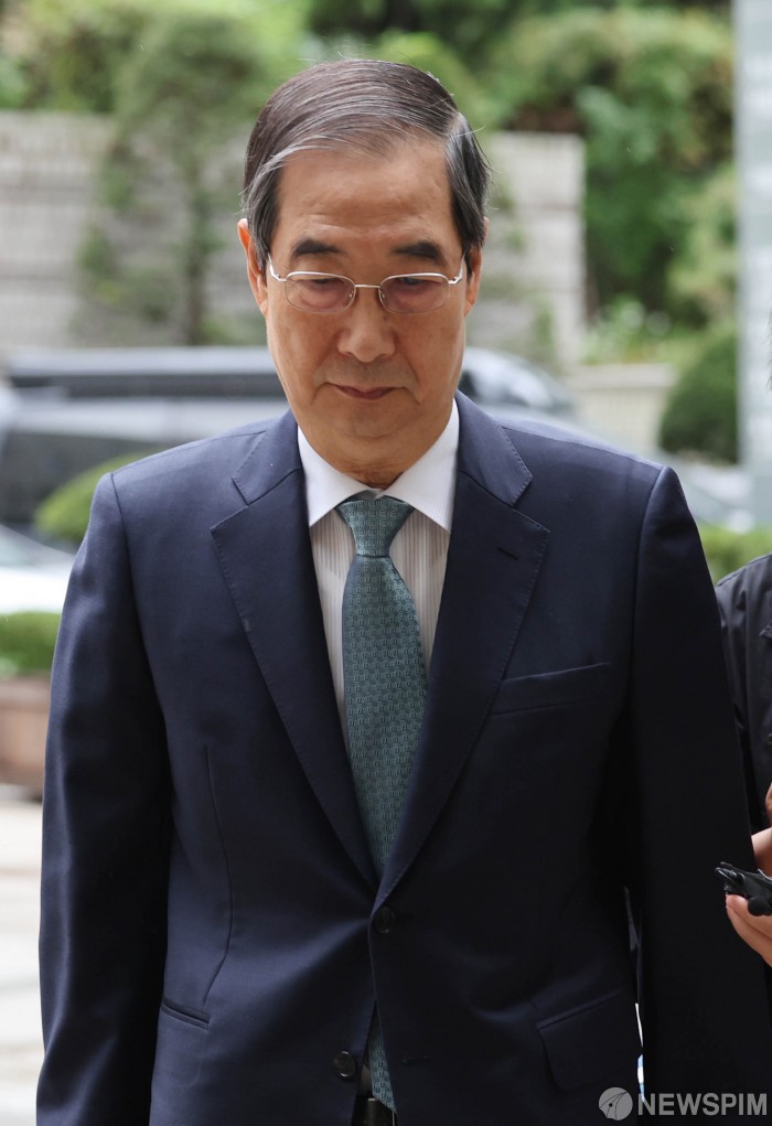 [서울=뉴스핌] 양윤모 기자 = 한덕수 전 국무총리가 13일 오전 서울 서초구 서울중앙지법에서 열리는 내란 우두머리 방조 및 위증 등 혐의 2차 공판에 피고인으로 출석하고 있다. 2025.10.13 yym58@newspim.com