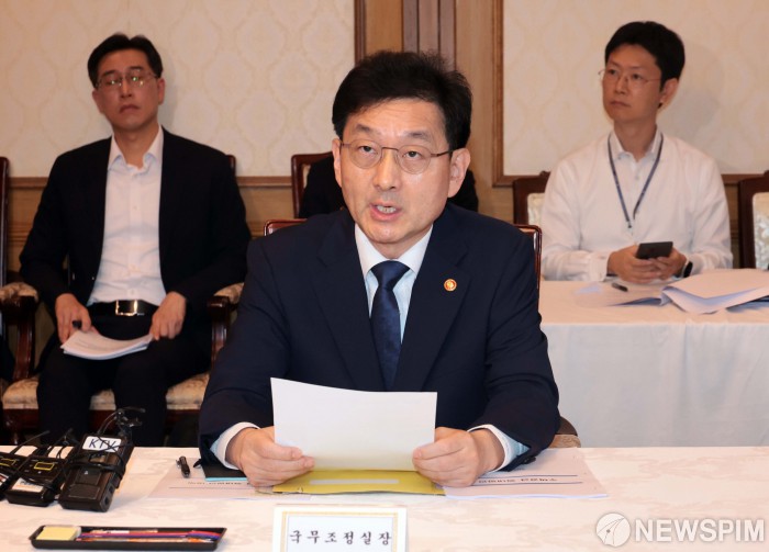윤 실장은 국조실 주요 업무도 설명했다. 그는 "첨단산업 육성 관광 활성화 자살예방 등 주요 현안에 대응하며 주례회동, 국무차관회의, 국정현안관계장관회의, 각종 관계장관회의·차관회의 등 다양한 국정협의체를 통해 국무총리를 보좌하고 현안에 신속히 대응하고 있다"고 했다.