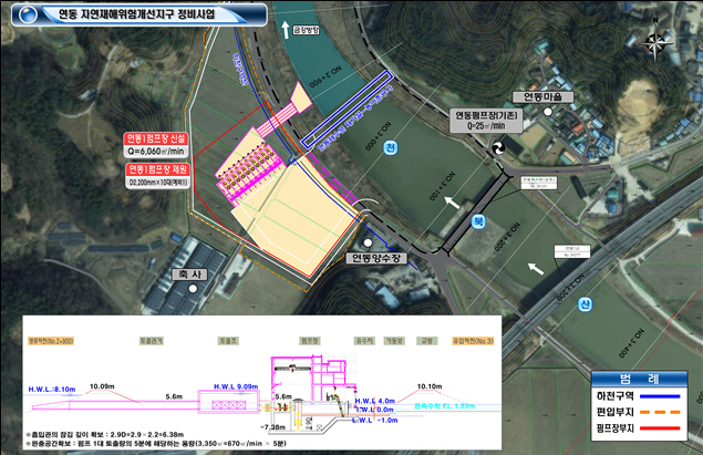 주요 사업 내용은 분당 6060㎥ 규모의 대형 배수펌프장을 신설해 배수 기반시설을 확충하는 것이다.