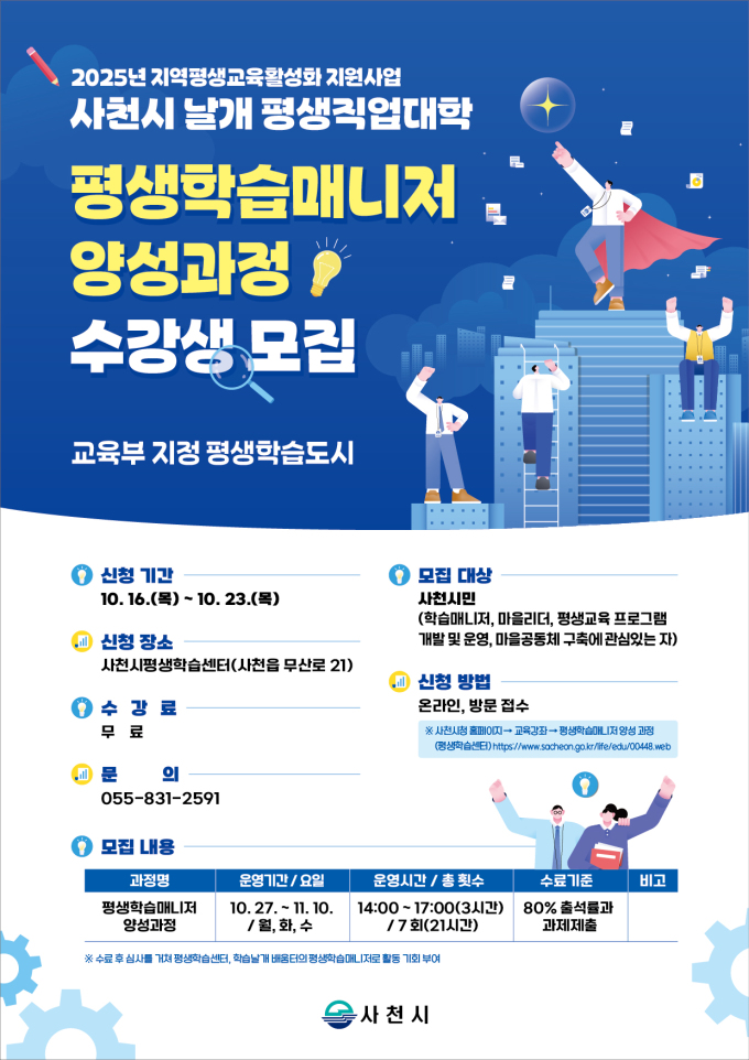 2025년 평생학습 매니저 양성과정 수강생 모집 안내 포스터 [사진=사천시] 2025.10.13 |