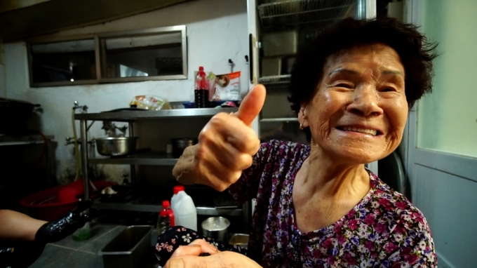 [서울=뉴스핌] 오광수 문화전문기자 = 할매밥상이 최고라고 엄지척을 하는 전남 고흥 식당의 주인. [사진 = EBS] 2025.10.13 oks34@newspim.com |