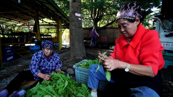 [서울=뉴스핌] 오광수 문화전문기자 = 열무를 다듬는 영자와 복순 할매. [사진 = EBS] 2025.10.13 oks34@newspim.com |