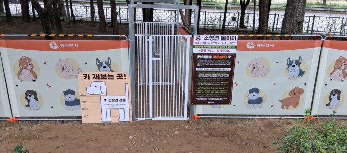 [동두천=뉴스핌]신선호 기자=동두천시는 13일 반려견과 시민이 함께 어울릴 수 있는 반려동물 문화공간을 조성하기 위해 강변로 156(강변근린공원 내)에 반려견 간이놀이터(이동식 울타리)를 설치하고 시범운영에 들어갔다고 밝혔다.