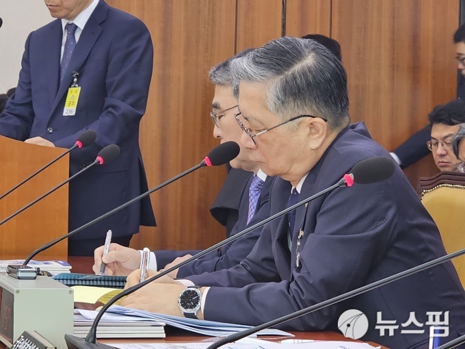 [서울=뉴스핌] 최현민 기자 = 이한준 LH 사장이 천준호 더불어민주당 의원의 제언을 듣고 메모하고 있다. 2025.10.14 min72@newspim.com