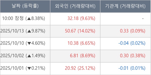 [표] 외국인ㆍ기관 순매매량 (단위 만주)