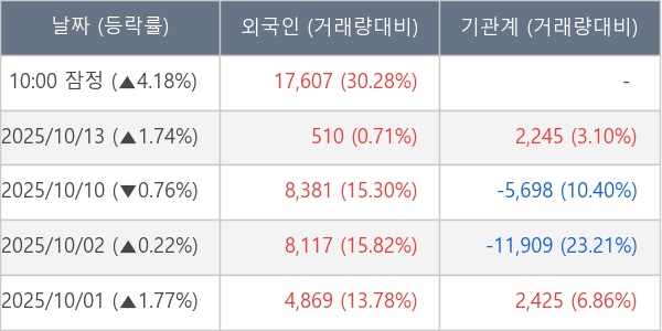 [표] 외국인ㆍ기관 순매매량 (단위 주)
