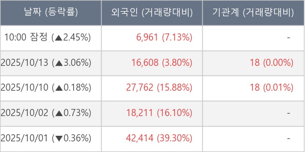 [표] 외국인ㆍ기관 순매매량 (단위 주)