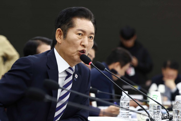 [서울=뉴스핌] 국회사진기자단 = 정청래 더불어민주당 당대표가 14일 오전 서울 용산구 합동참모본부에서 열린 2025년 국정감사에서 진영승 합참의장에게 질의하고 있다. 2025.10.14 photo@newspim.com
