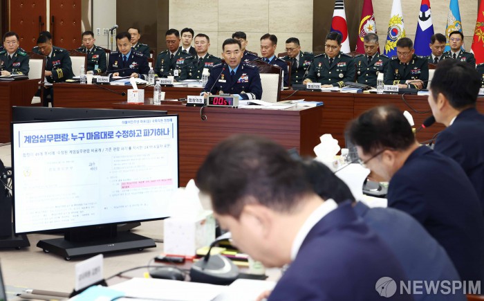 [서울=뉴스핌] 국회사진기자단 = 진영승 합동참모본부 의장이 14일 오전 서울 용산구 합동참모본부에서 열린 2025년 국정감사에서 의원 질의에 답변하고 있다. 2025.10.14 photo@newspim.com