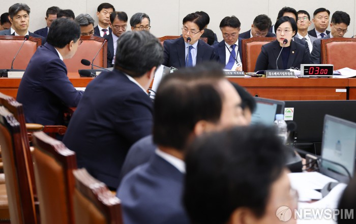[서울=뉴스핌] 최지환 기자 = 한성숙 중소벤처기업부 장관이 14일 오전 서울 여의도 국회 산업통상자원중소벤처기업위원회에서 열린 중소벤처기업부 등에 대한 국정감사에서 의원 질의에 답변하고 있다. 2025.10.14 choipix16@newspim.com