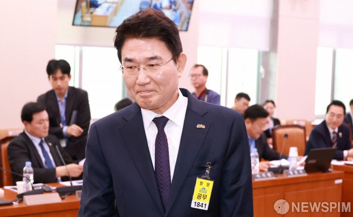 [서울=뉴스핌] 김학선 기자 = 노관규 순천시장이 14일 서울 여의도 국회에서 열린 문화체육관광위원회 국정감사에서 선서문을 제출한 뒤 자리로 향하고 있다. 2025.10.14 yooksa@newspim.com