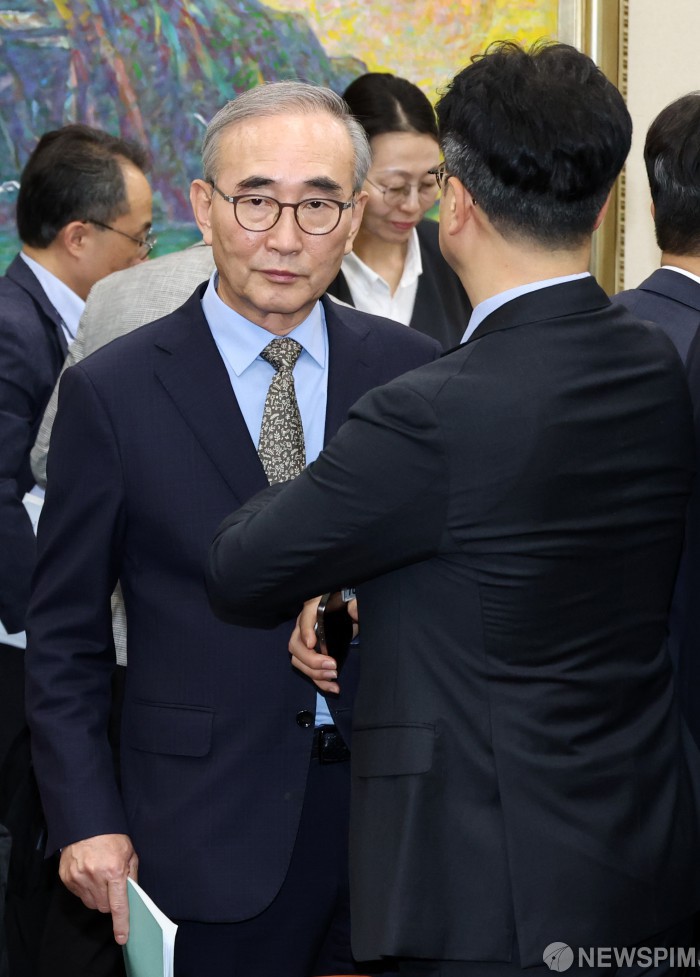 [서울=뉴스핌] 최지환 기자 = 김영섭 KT 대표가 14일 오후 서울 여의도 국회 정무위원회에서 열린 공정거래위원회, 개인정보보호위원회 등 국정감사에 입장하고 있다. 2025.10.14 choipix16@newspim.com