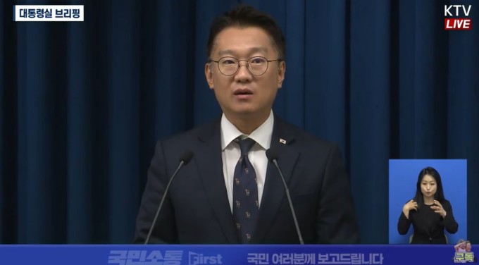 김남준 대통령실 대변인이 14일 오후 용산 대통령실에서 브리핑을 열고 캄보디아에 구금된 우리 국민들의 송환 계획에 대해 밝히고 있다. [사진=KTV] |