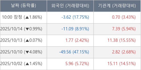 [표] 외국인ㆍ기관 순매매량 (단위 만주)